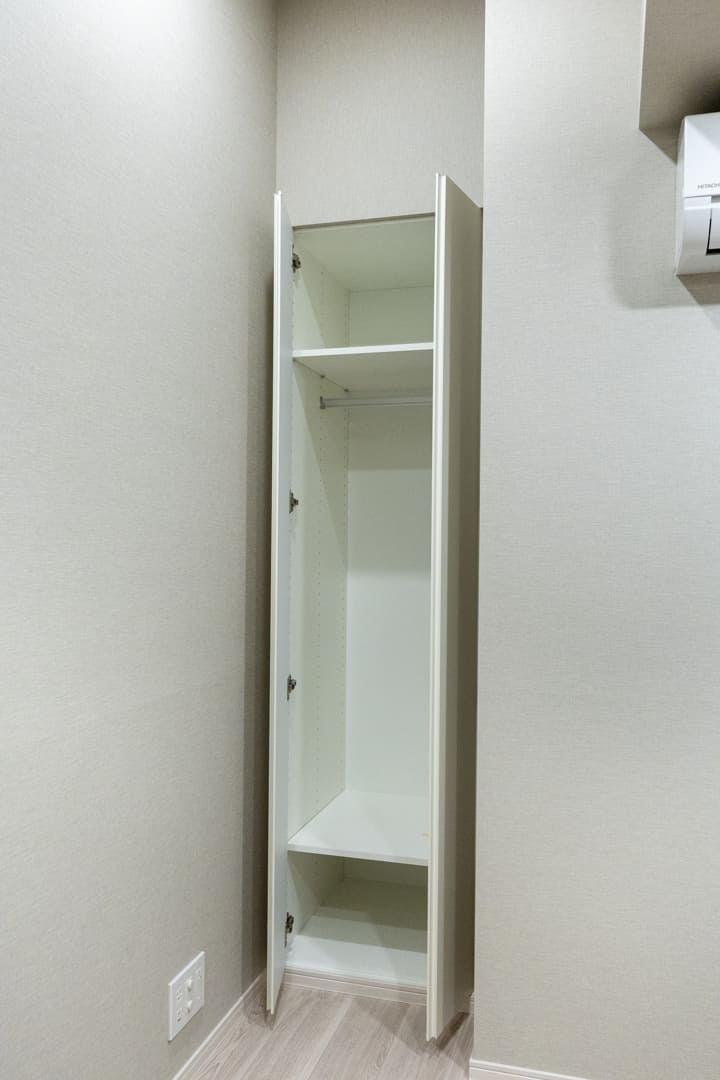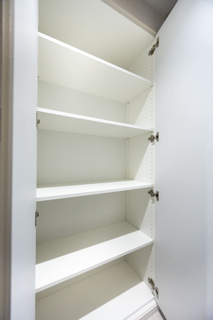 生活感が出がちな小物を収納できる棚や掃除などの家電も収納できそうな約0.6帖の納戸が造られています。荷物をきちんと収納できると、居住スペースをより有効的に使えるので嬉しいですね。