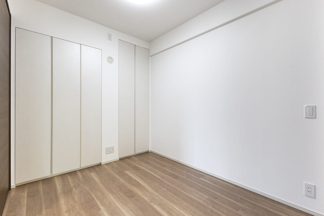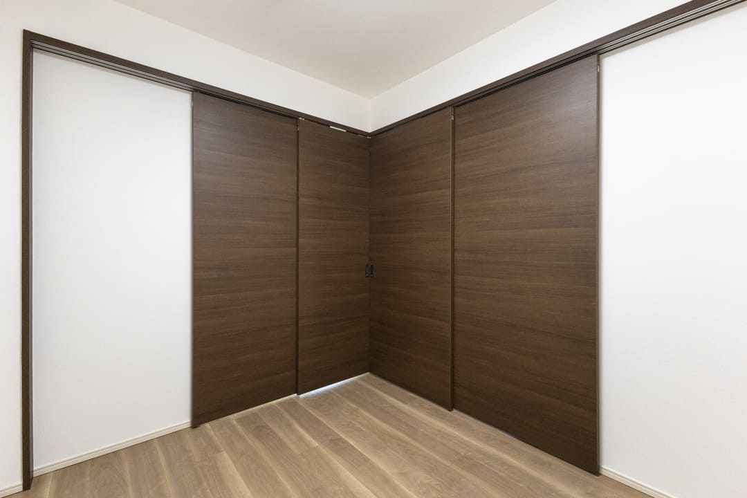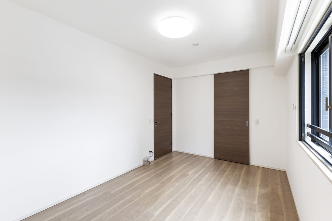 約5.0帖の洋室3。LDKとは引き戸で仕切られていて、ライフスタイルに合わせてフレキシブルに活用できます。扉を開放すればリビングと一体となった開放的な空間に、閉めればワークスペースや書斎などのプライベートルームに。暮らし方に寄り添いながら、多彩なシーンで活躍してくれるお部屋です。
