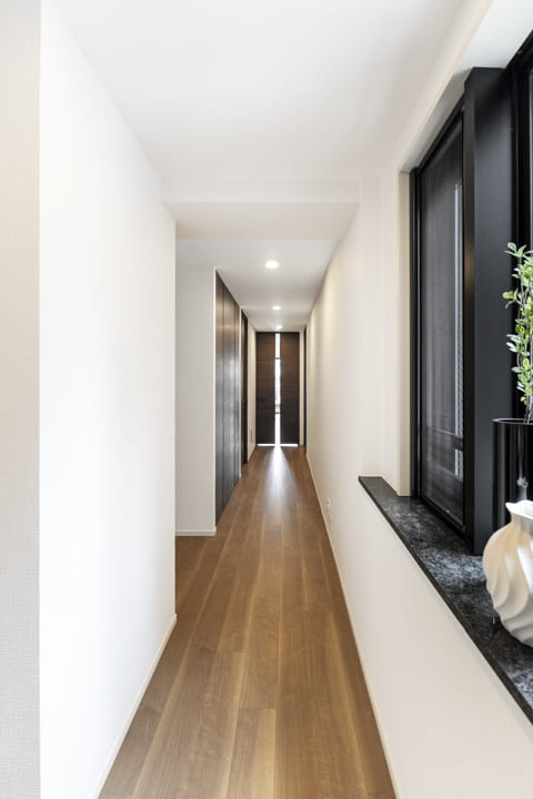 約6.0帖の洋室2。廊下の突き当たりに位置する、独立性とプライバシーに配慮した部屋配置です。吹抜けに面した窓を設け、明るさと良好な通風を確保。約1.2帖のWIC(ウォークインクローゼット)を備え、お部屋をすっきりと使える収納性の高さも魅力です。子ども部屋としてはもちろん、静かな環境を活かしたワークスペースとしても適しています。