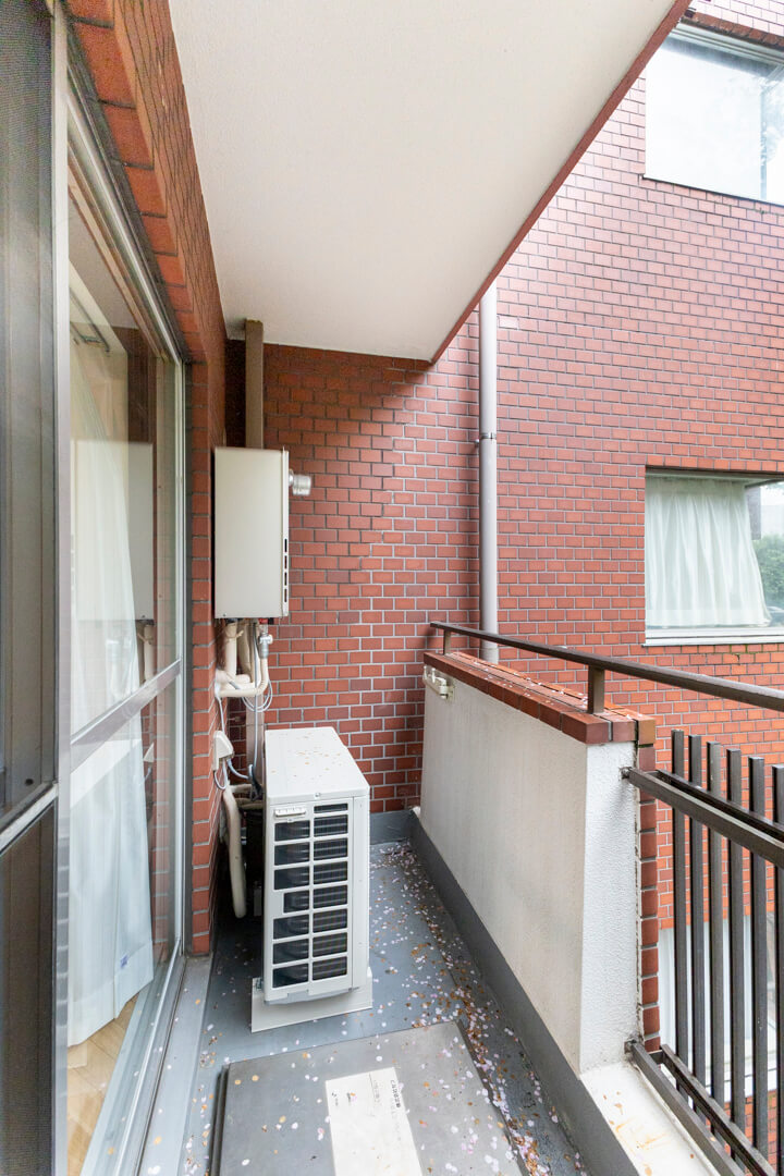 リビングダイニングに面したバルコニー。約3.29㎡程の広さです。桜の木が望め、春には花見も楽しめそうです。