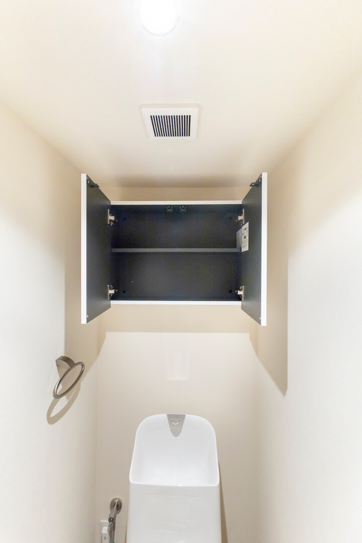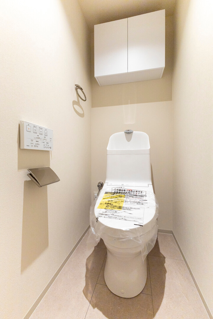 廊下に面したレストルーム。手洗いタンク付きのトイレです。ウォシュレット、収納スペースも備わっています。