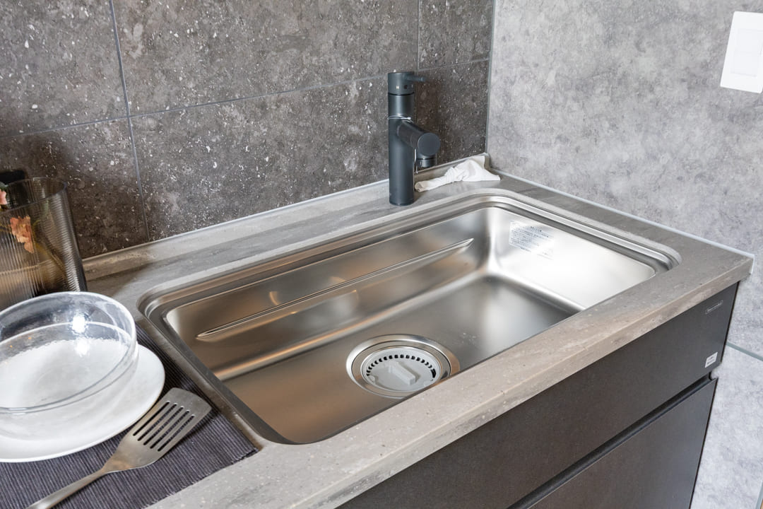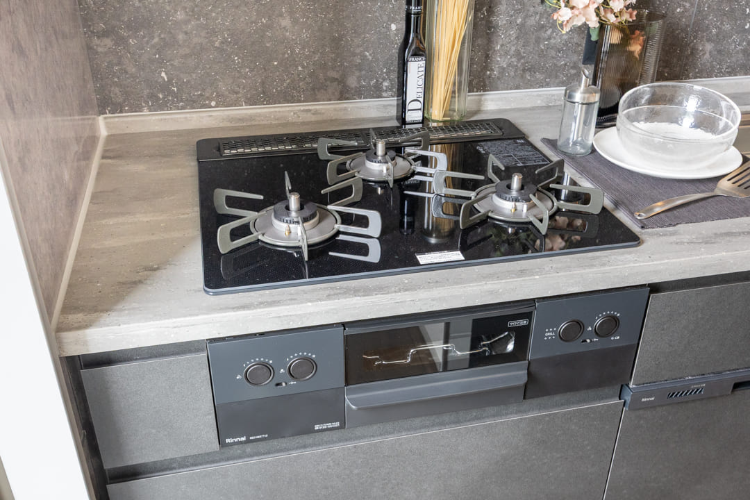 3口コンロ、グリル、ディスポーザー、食洗機付きと設備面も充実しています。シンクも広々としているので野菜などが洗いやすそうですよ
