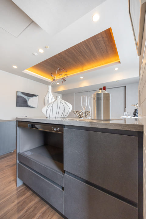 リビングダイニング側にはカウンターが造られています。調味料や食器などを収納できるだけでなく、家電なども置くこともできるので便利です。