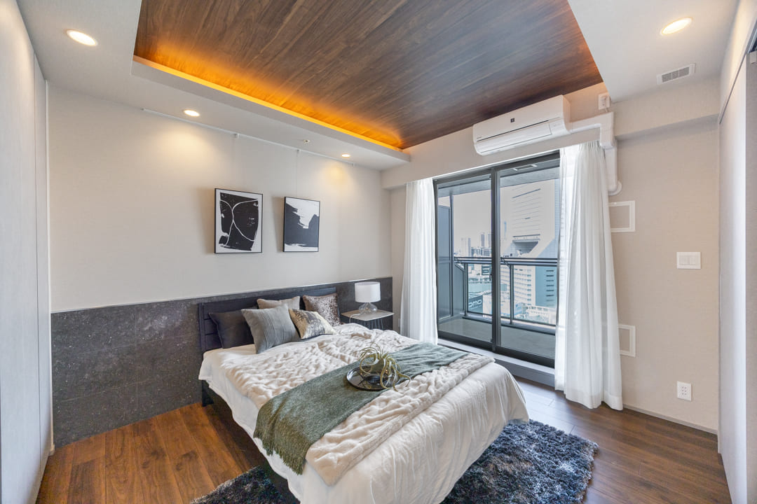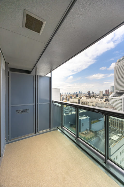 窓からは奥行きがあるバルコニーにアクセスができます。チェアなどを置けば、読書やティータイムを楽しむことができる憩いの場に。屋根がしっかりとあるタイプなのも◎。