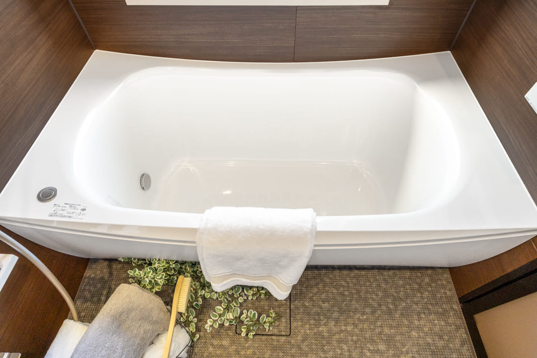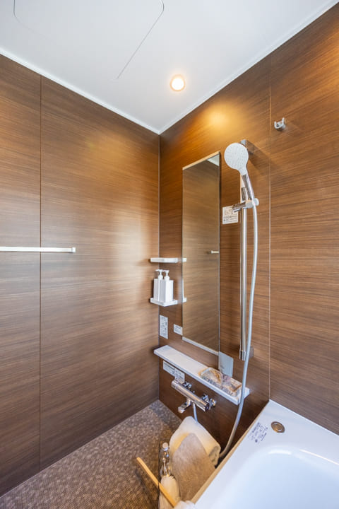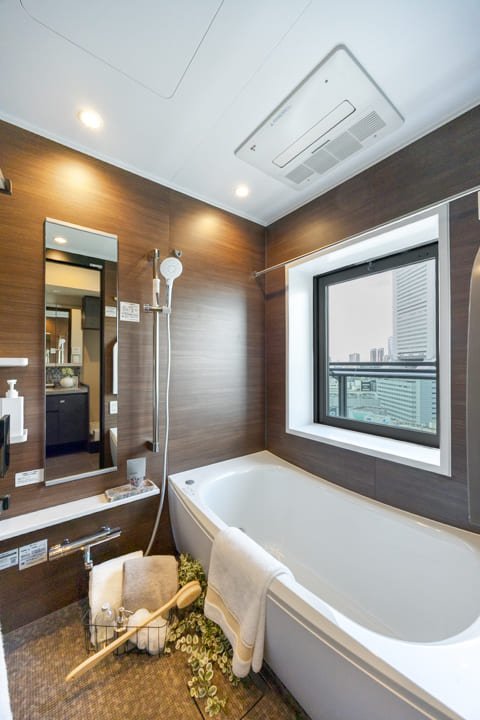 1416サイズのバスルームは、ブラウンの壁パネルが落ち着いた雰囲気。窓からは東京タワーが望め、夜景を楽しみながら入浴することができそうですよ。また、お風呂にゆっくり浸かるのが好きという方に嬉しい追い焚き機能を搭載。浴室乾燥機には暖房・乾燥・換気・涼風の機能がついており、一年中快適に過ごすことができます。