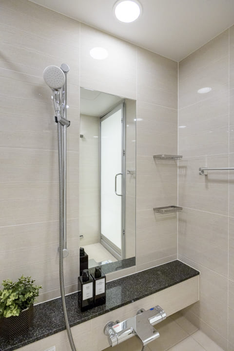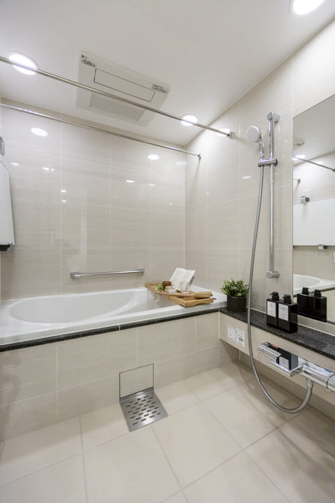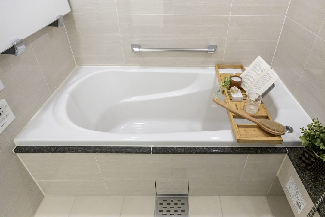 ベージュトーンでまとめられた落ち着きのあるバスルームです。1620サイズのため、ゆったりと入浴することができますよ。お風呂にゆっくり浸かるのが好きという方に嬉しい追い焚き機能を搭載。家族の入浴時間がずれてしまっても安心です。また、浴室乾燥機には暖房・乾燥・換気・ミストサウナの機能がついており、一年中快適に過ごすことができます。