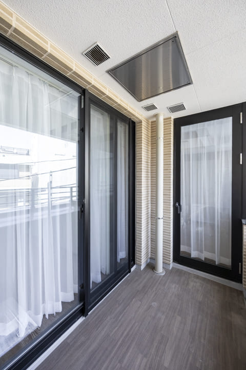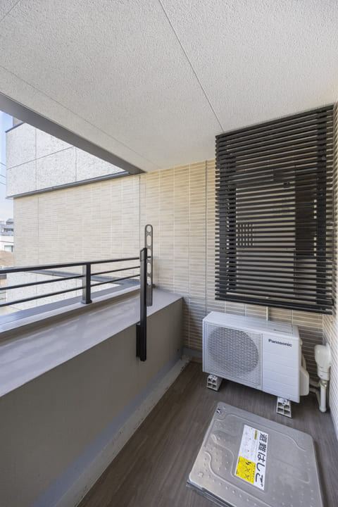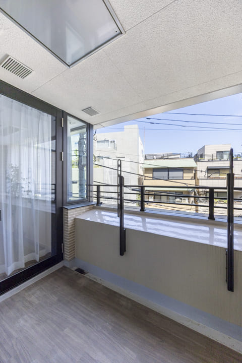 寝室2の窓からはバルコニーにアクセスができます(LDKからも可能)。約6.20㎡で東向き、奥行きがあるタイプのため、チェアなどを置いて気分転換にも◎。洗濯金物が設置されているので、洗濯物も干しやすくなっています。