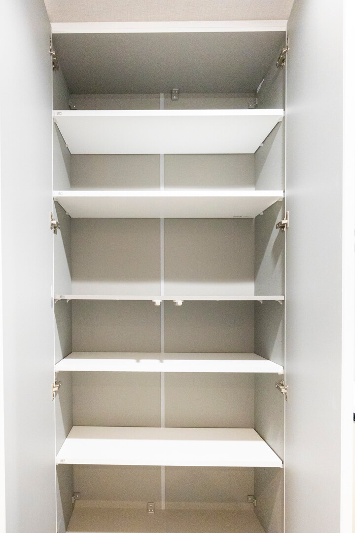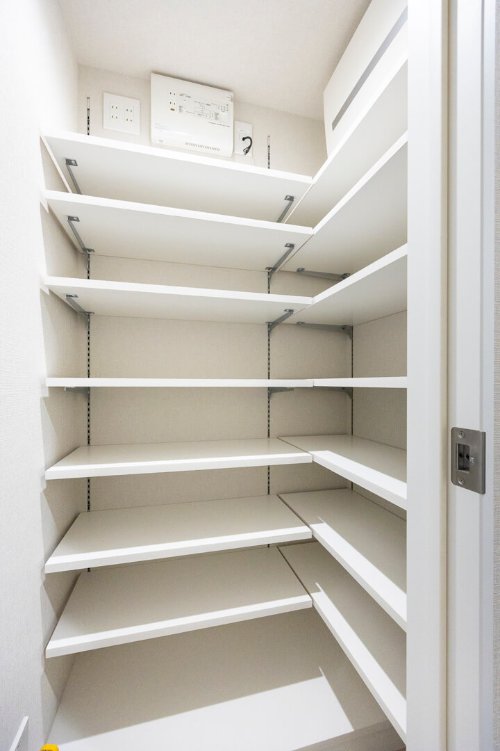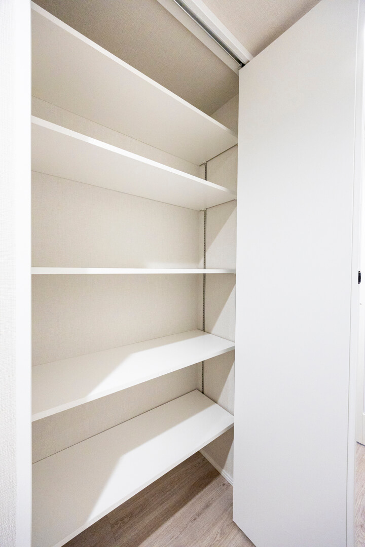 玄関にはSIC(シューズインクローゼット)を完備。L字型に可動棚が設置されていて靴がたっぷりと収納可能。その他にスポーツ用品なども収納できそうですね。