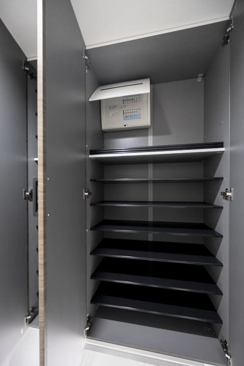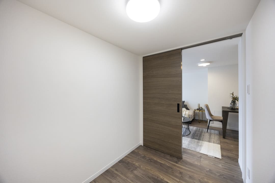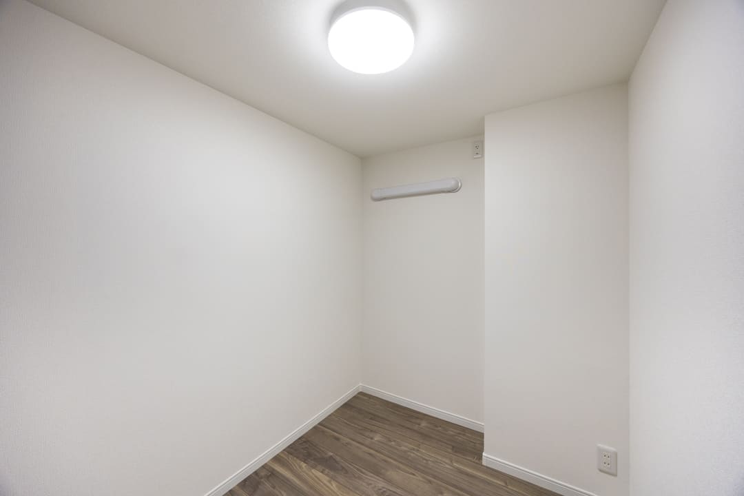 約2.70帖のサービスルームです。窓はありませんが、外の明るさや天候に左右されにくいため、落ち着いた環境で物事に集中しやすい空間となっています。リモートワークスペースとして使っても◎。または、納戸として収納スペースとして使っても良いかもしれませんね。
