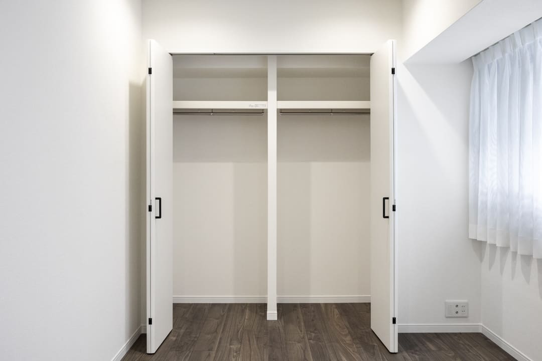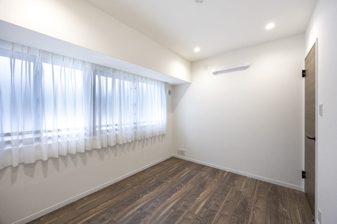 約5.4帖の洋室は、長方形で家具のレイアウトがしやすそうです。ベッドを配置してゆったりとくつろげる主寝室としてお使いいただけます。奥行きのあるクローゼット付きのため、収納スペースも確保されていますよ。