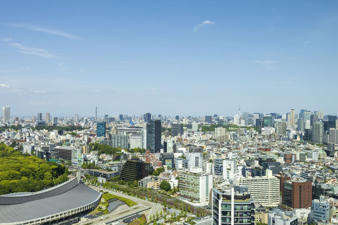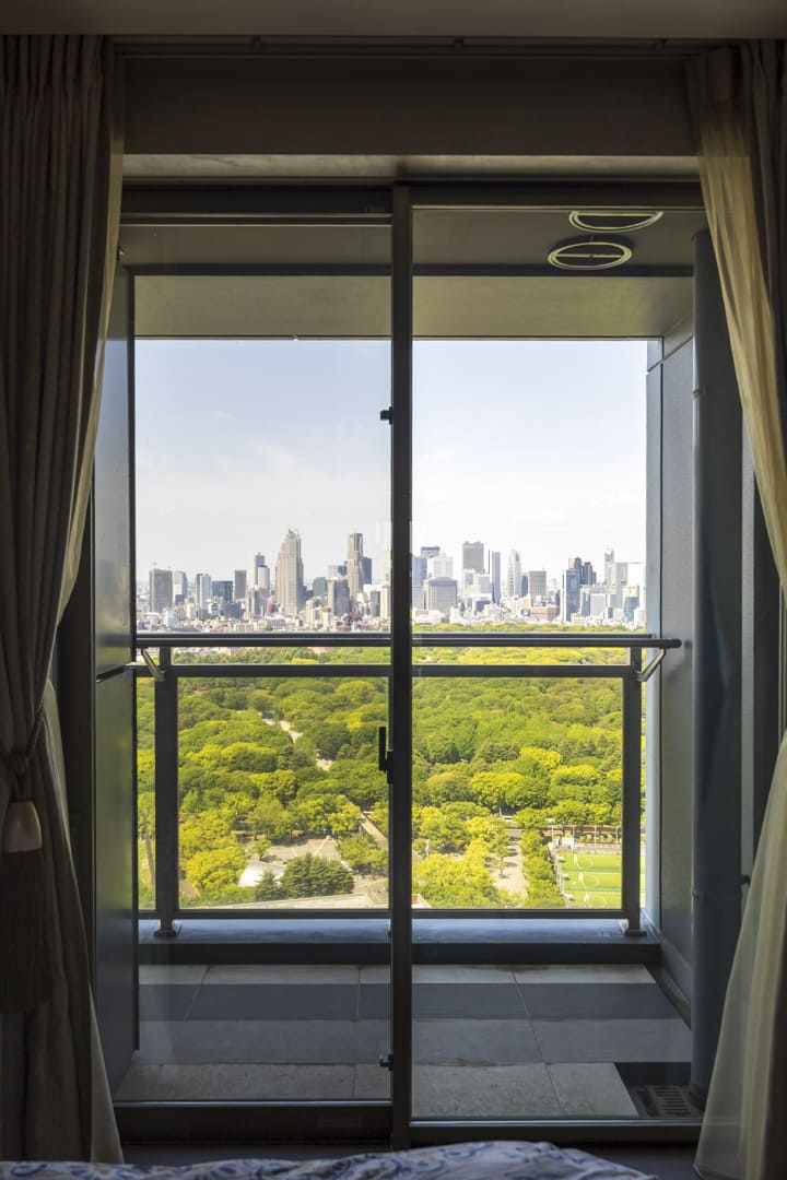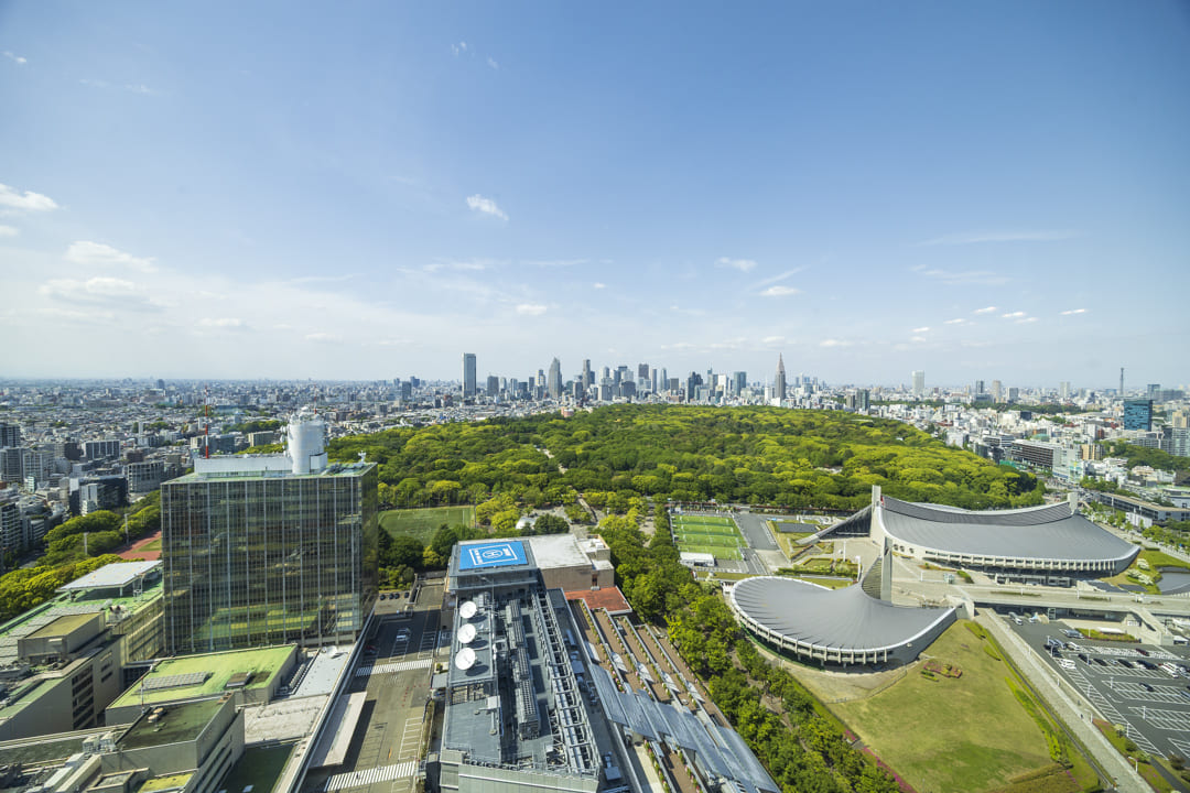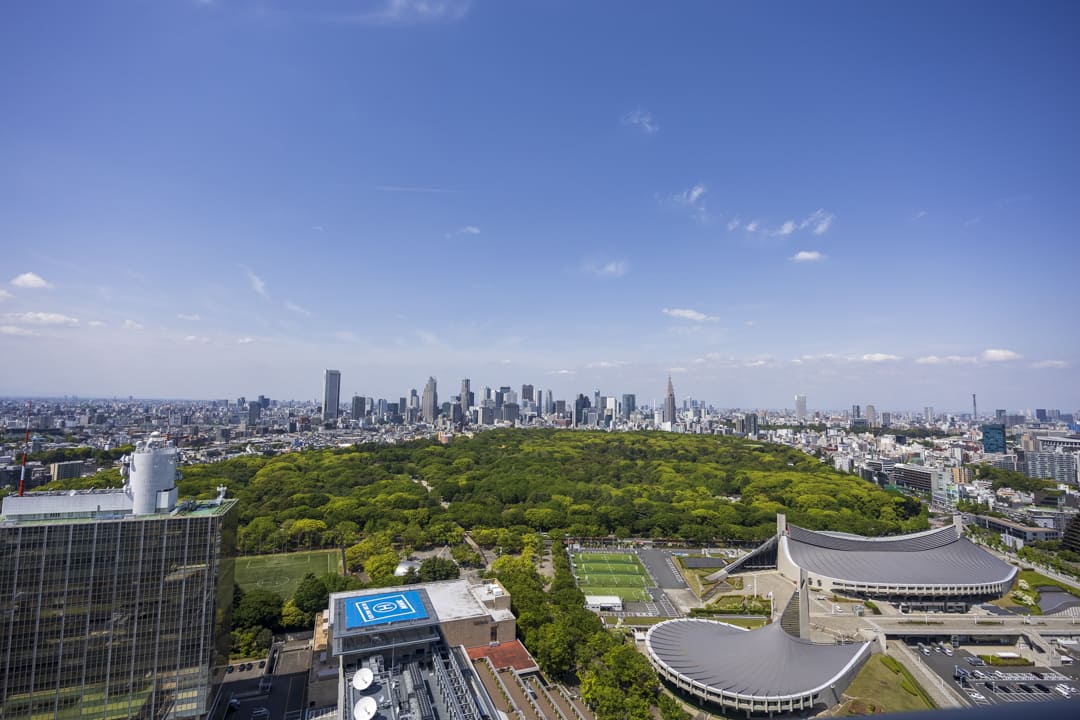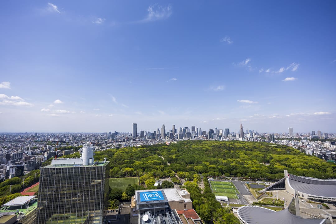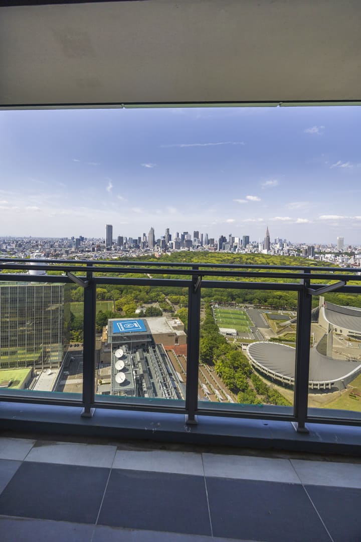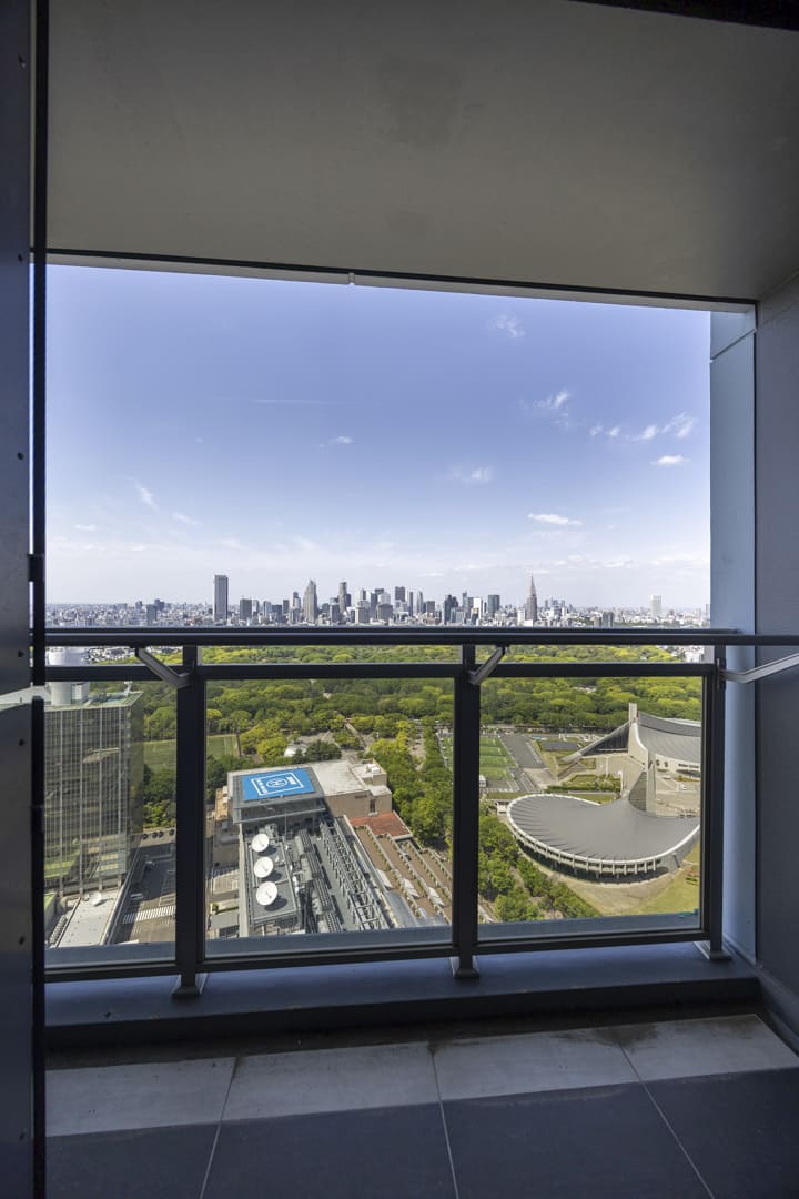 3つの寝室に面する北向きのバルコニー。13.38㎡のゆとりある広さを確保しています。36階ならではの開放的な眺望が広がり、眼下には代々木公園の広大な緑景を一望。青空との美しいコントラストが、都心にいながら穏やかなやすらぎをもたらします。