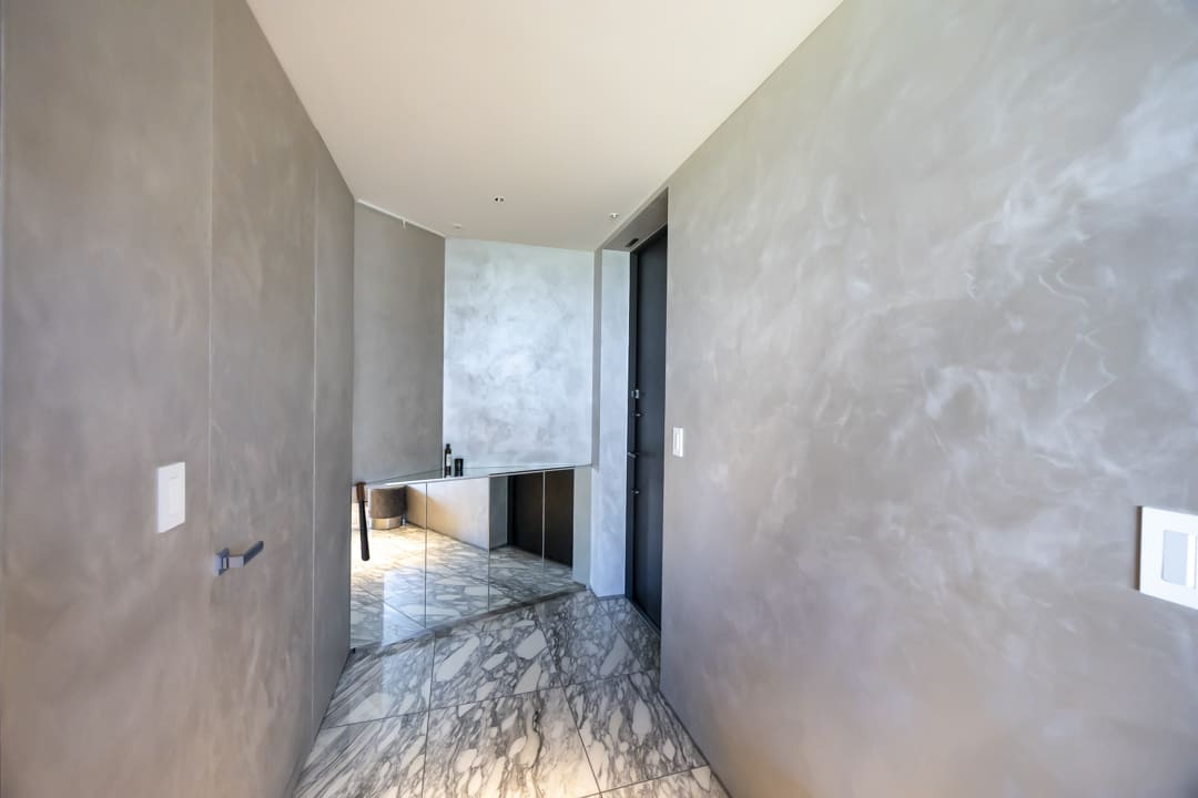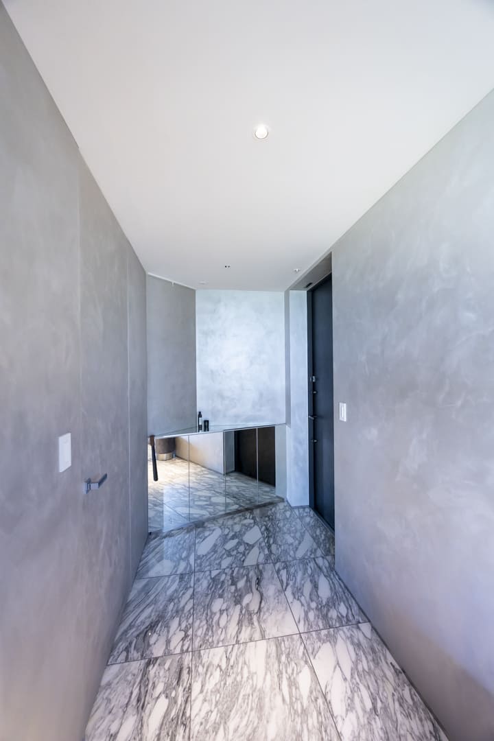 大理石調のフロアが広がり、上質感漂う玄関ホール。ミラー仕様のシューズボックスが空間に奥行きをもたらし、すっきりとした印象を演出します。加えて、SIC(シューズインクローゼット)を備えており、靴類や外出用品を用途に応じて整理可能。さらに廊下部分にも収納スペースを2ヶ所確保し、住空間全体を美しく保てるよう配慮されています。
