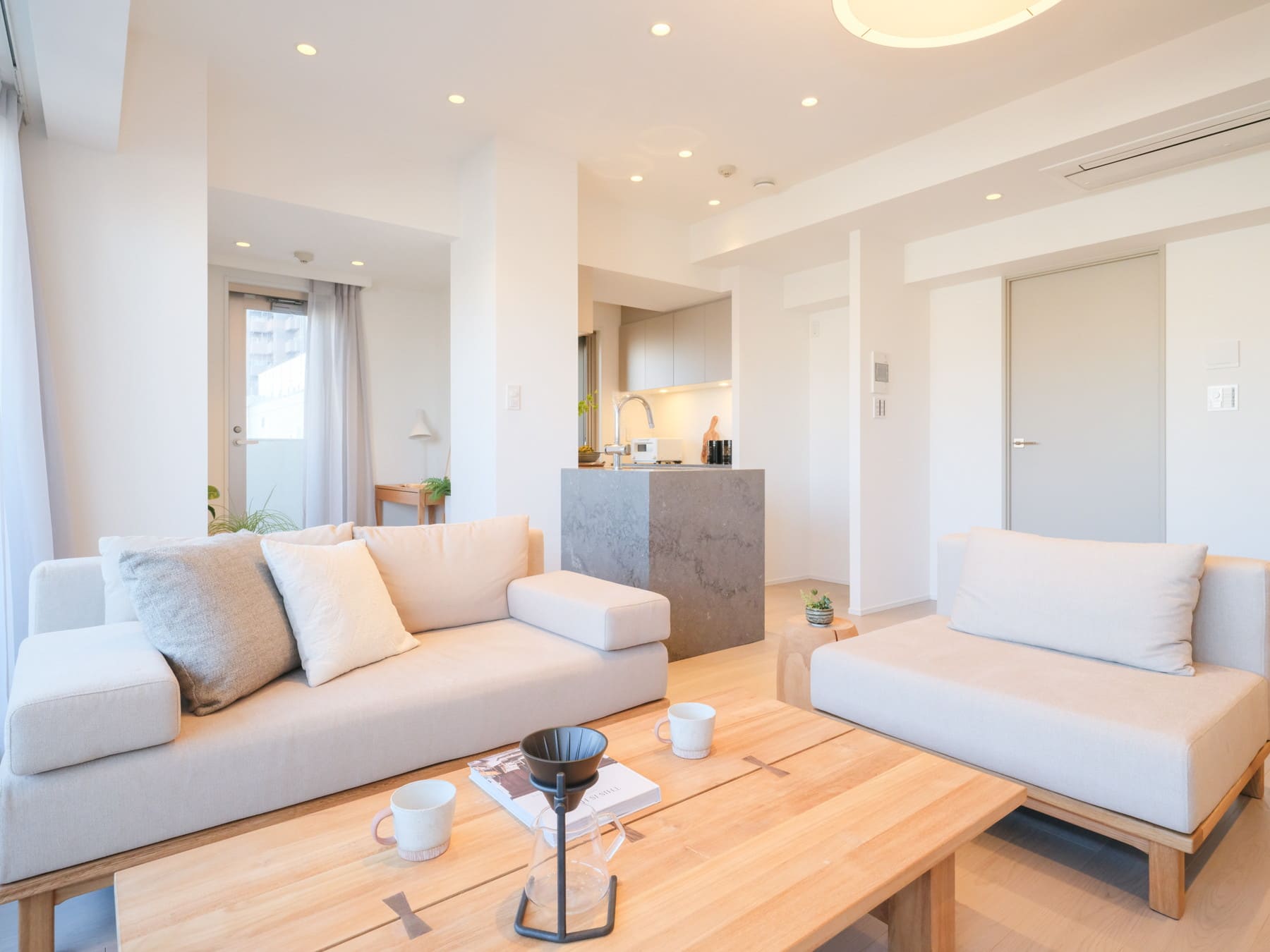 全居室に面したL字型バルコニーは、22㎡超のゆとりある広さ。新宿周辺の高層ビル群を望む開放的なロケーションで、夕景から夜景へと移り変わる都市の景色を日常的に楽しむことができます。全室から出入りが可能なため、住まい全体に風通しと広がりをもたらす設計です。