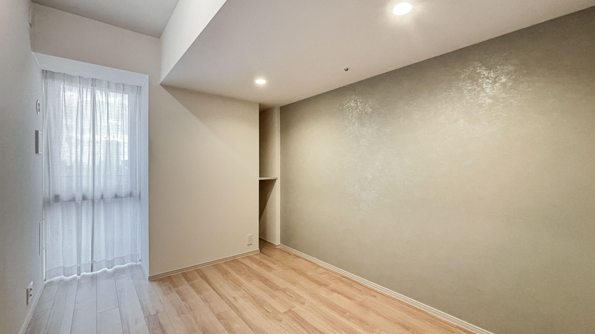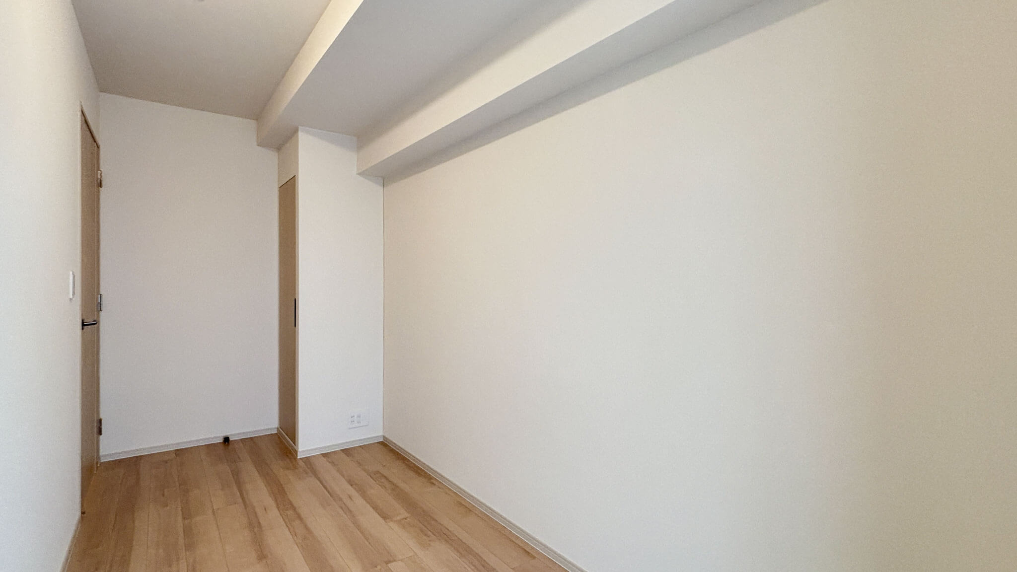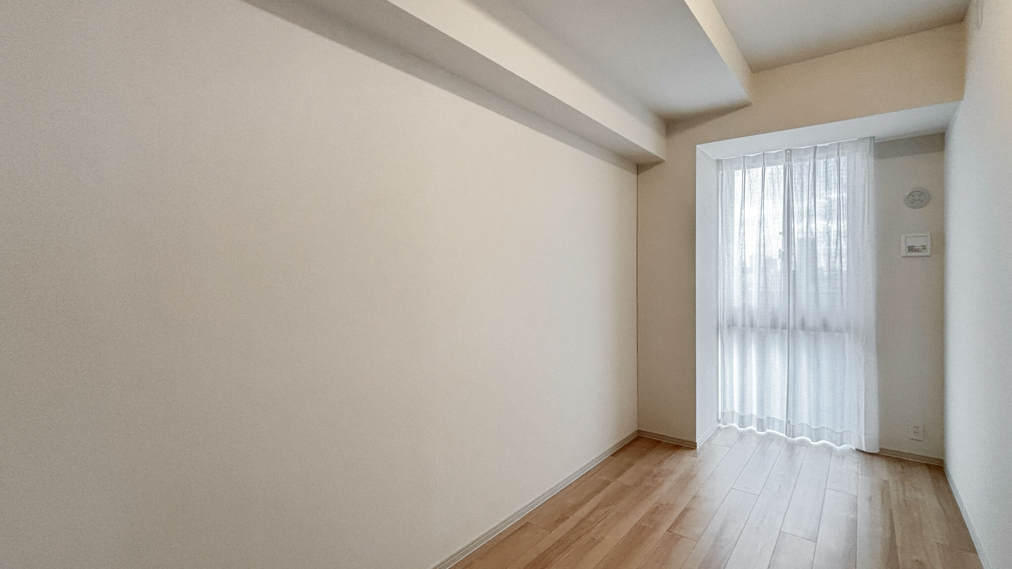 約5.0帖の洋室2。こちらもリビングから直接出入り動線で、家族とのコミュニケーションが取りやすくなっています。南向きで窓はバルコニーに面しています。クローゼットも付いています。