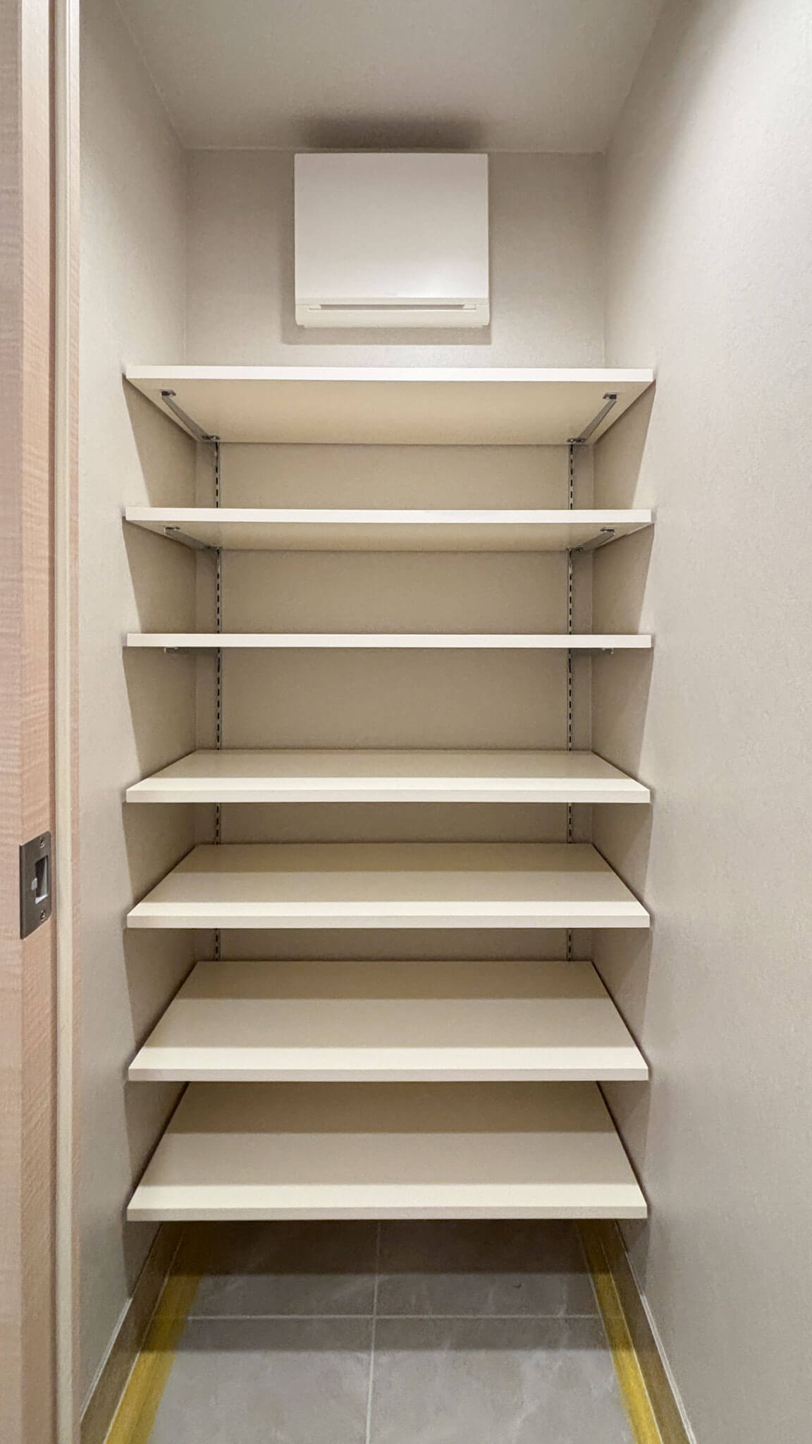 玄関には約0.6帖のSIC(シューズインクローゼット)を完備。たくさんの靴はもちろん、スポーツ用品やペット用品なども収納できそうですね。玄関外にはトランクルームも2ヵ所備わっています。