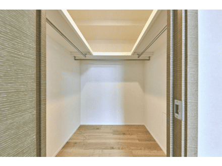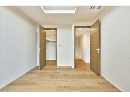 約7.6帖の洋室1は、ゆとりがあって主寝室に良さそうなお部屋です。床暖房も設置されているので、冬場も快適にお過ごしいただけます。また、約1.9帖のウォークインクローゼットが造られており、洋服や大きめの荷物もすっきりと収納することができますよ。