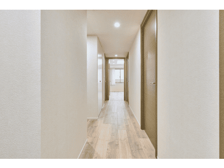 フローリングはナチュラルな風合いで美しい木目柄。床暖房付きなので、足元からぽかぽか温まることができます。床暖房は、床から直接伝わる熱(伝導熱)と床から部屋全体に広がる熱(ふく射熱)の組み合わせで暖まります。埃が舞いにくく、空気が乾燥しにくいのも◎です。