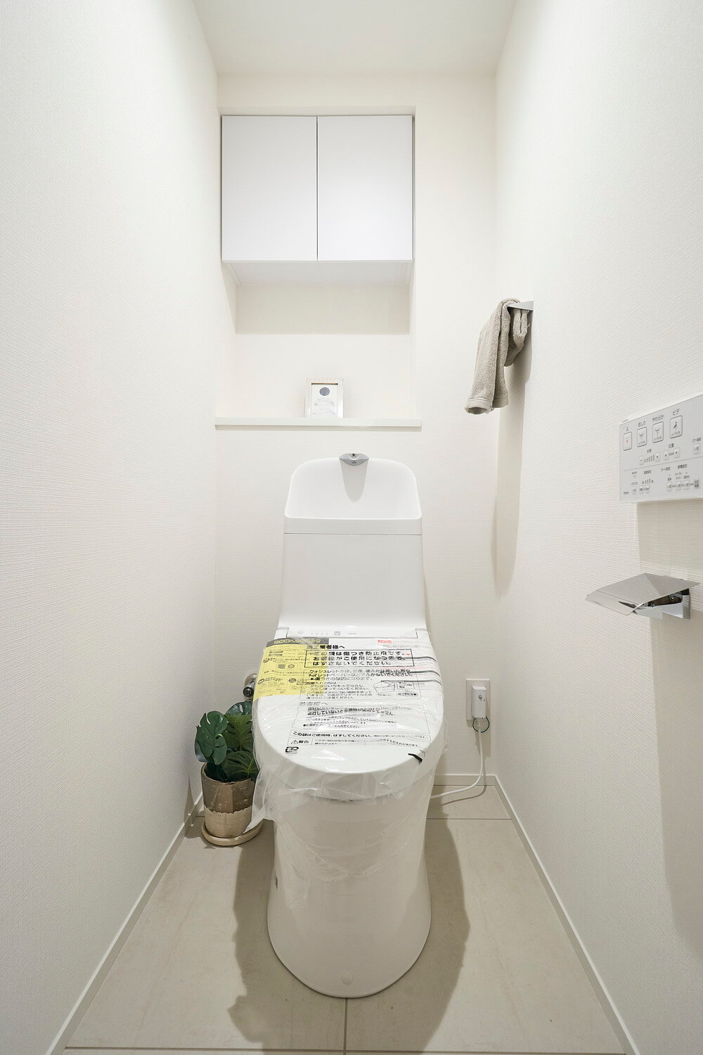 廊下に面したレストルーム。手洗いタンク付きのトイレです、ウォシュレット、収納スペースも備わっています。