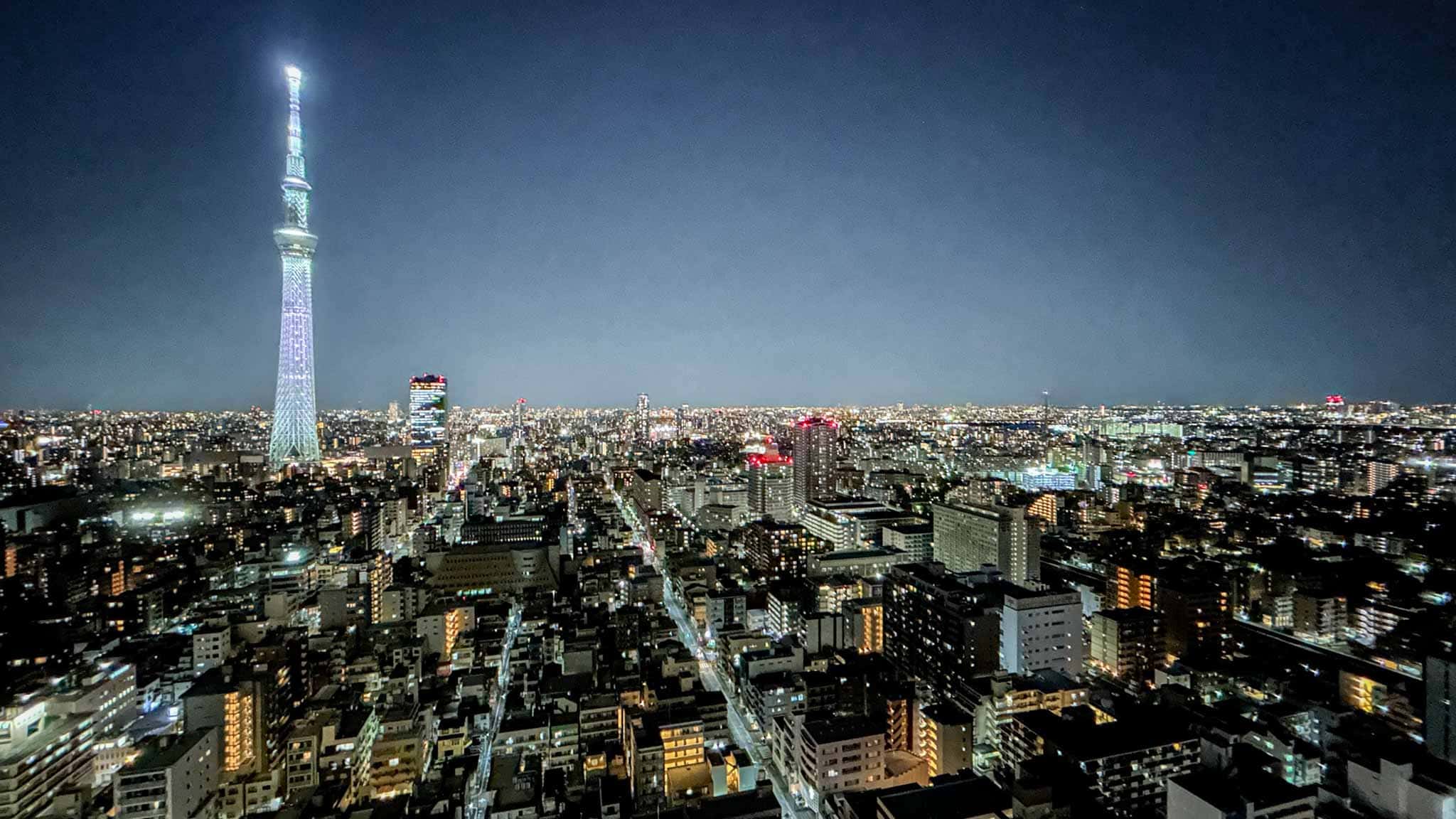33階部分ということで、お部屋からは東京のダイナミックな眺望が堪能できます。東京スカイツリーがそびえ立ち、夜には夜景の煌めきが広がります。また、その周辺には古き良き下町の雰囲気が広がり、“都市の奥行き”を感じることができますよ。