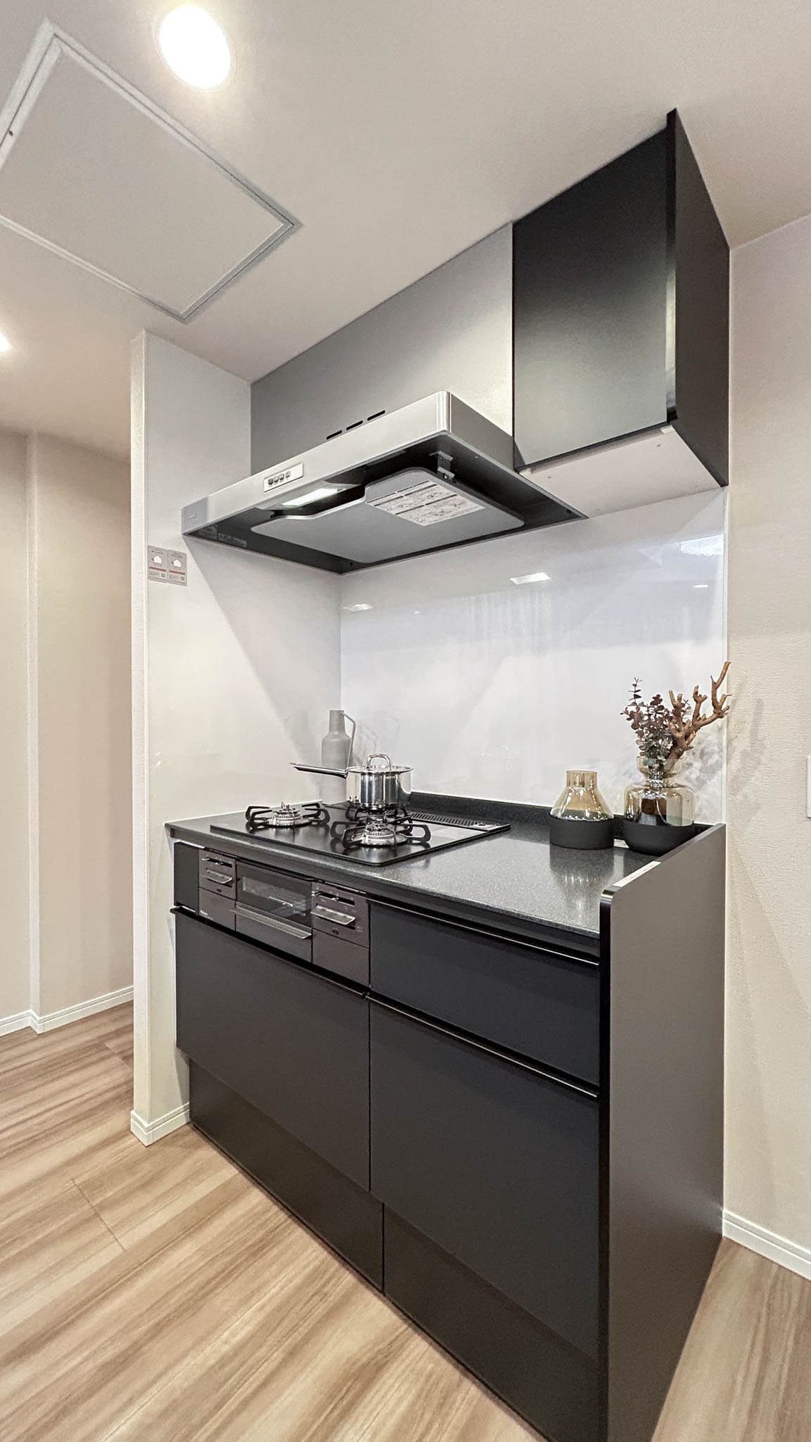 3口コンロ、グリル、食洗機付きと設備面も充実しています。シンクも広々としているので野菜などが洗いやすそうですよ。