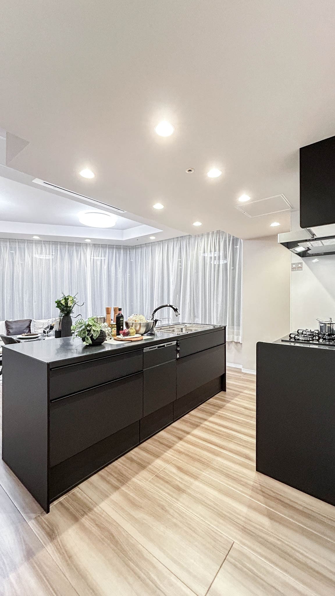 キッチンは、動線が最小限に済んで料理が捗るⅡ型を採用。対面式にもなっているので、家族やゲストとのコミュニケーションも取りやすくなっています。