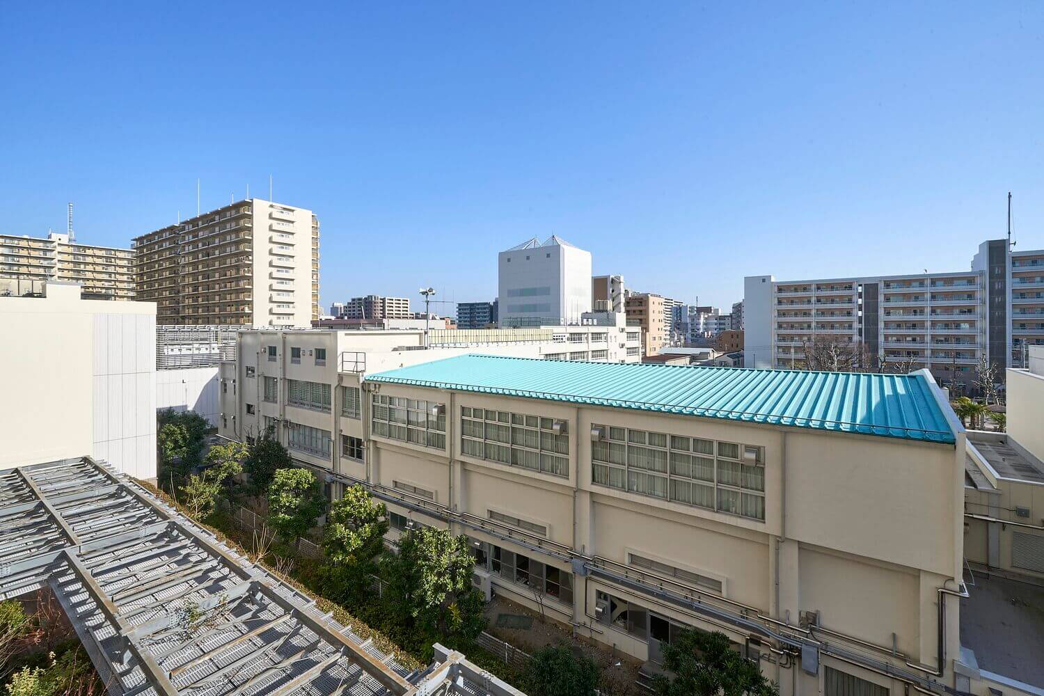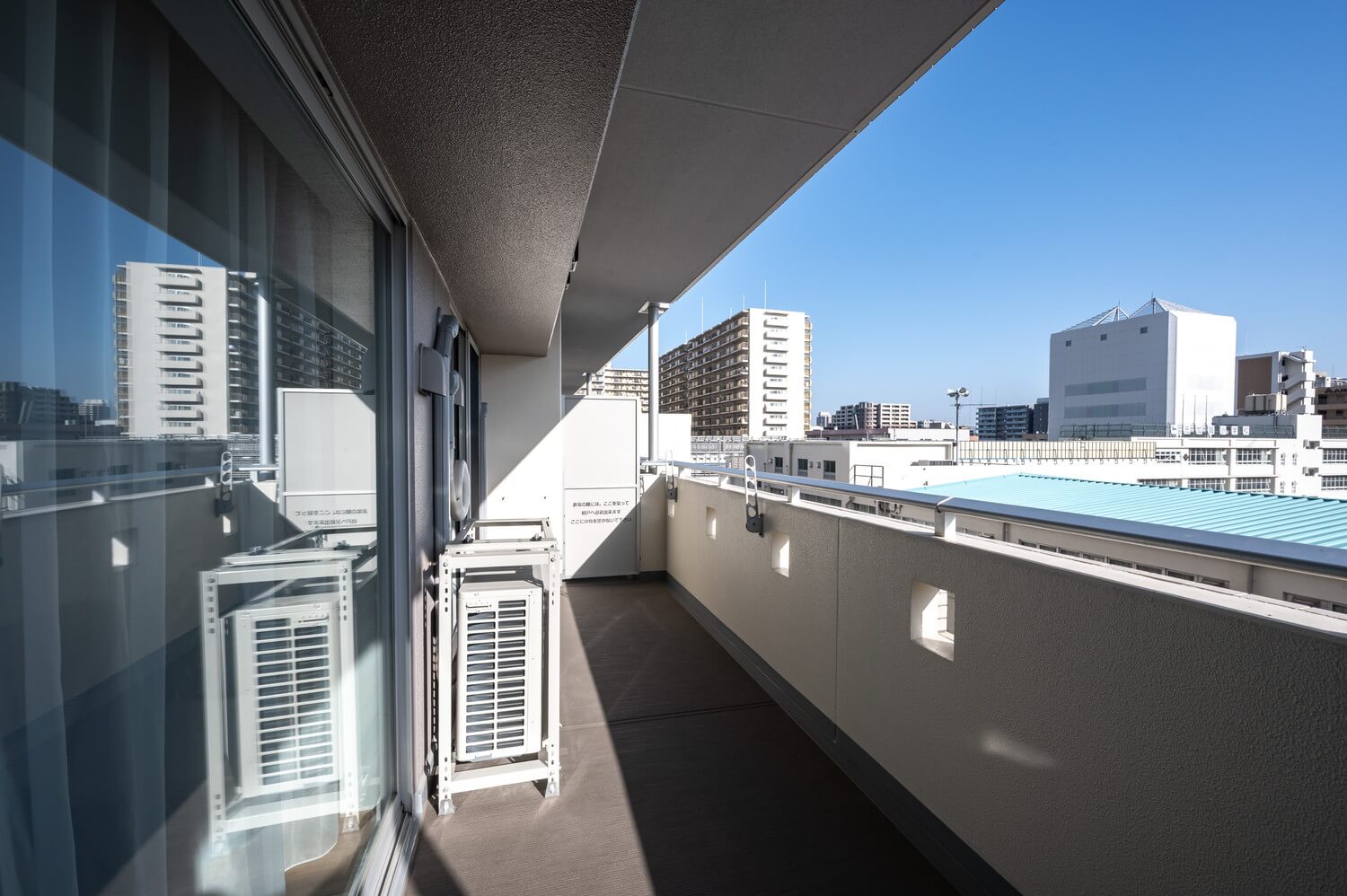 リビングダイニングと洋室3に面したバルコニー。約10.10㎡ほどの広さです。朝の光が心地よい東向き。バルコニー目の前は見晴らしのいい景色となっています。